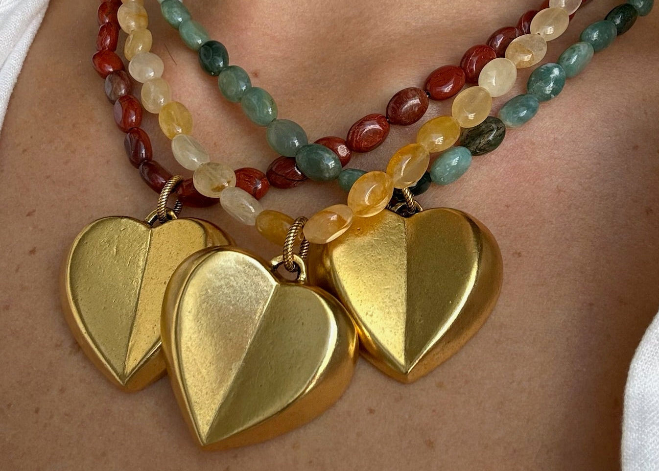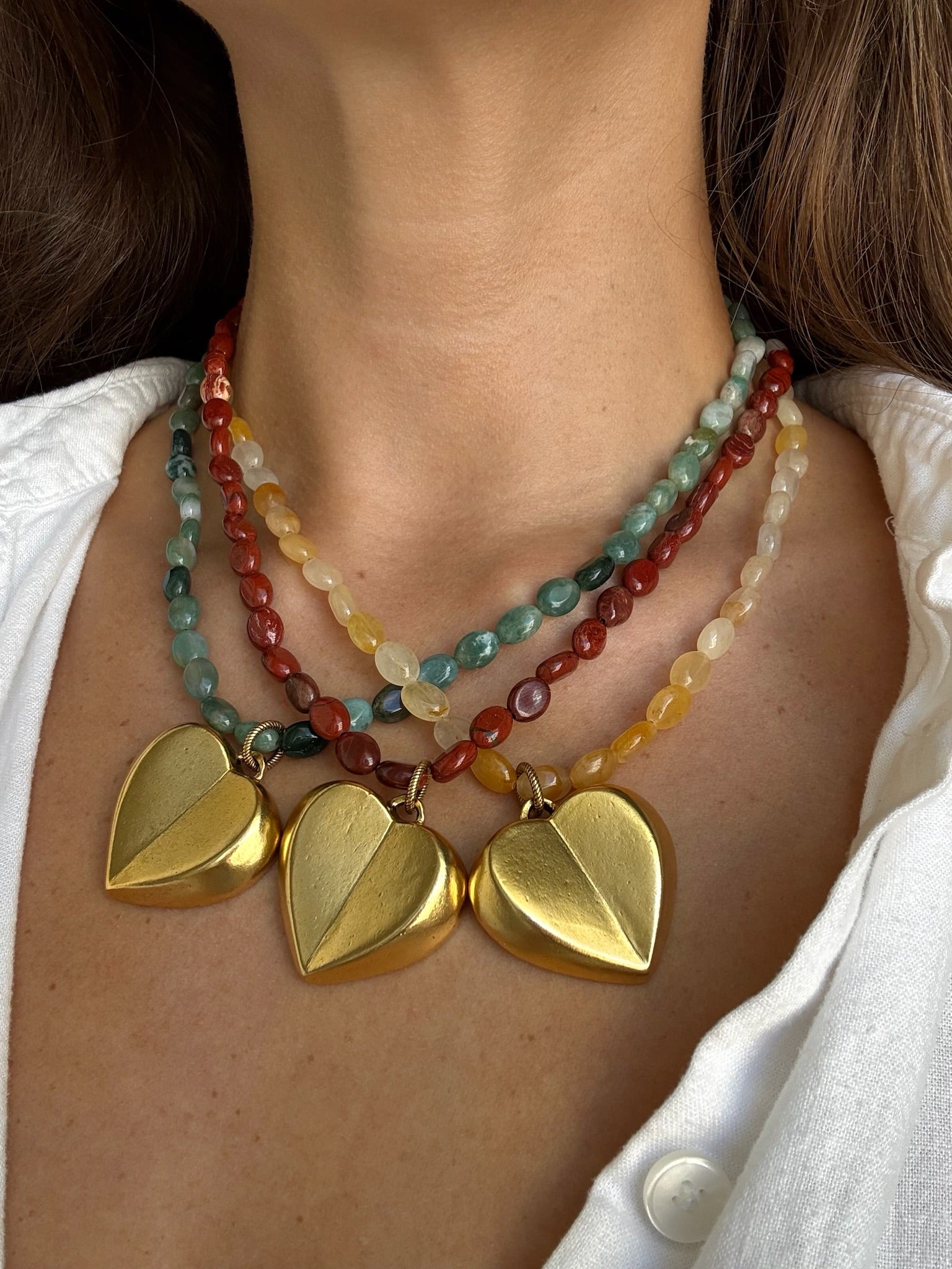 Hand-strung gemstone beads meet a dainty brass heart charm for a necklace that feels personal, polished, and perfect for layering
