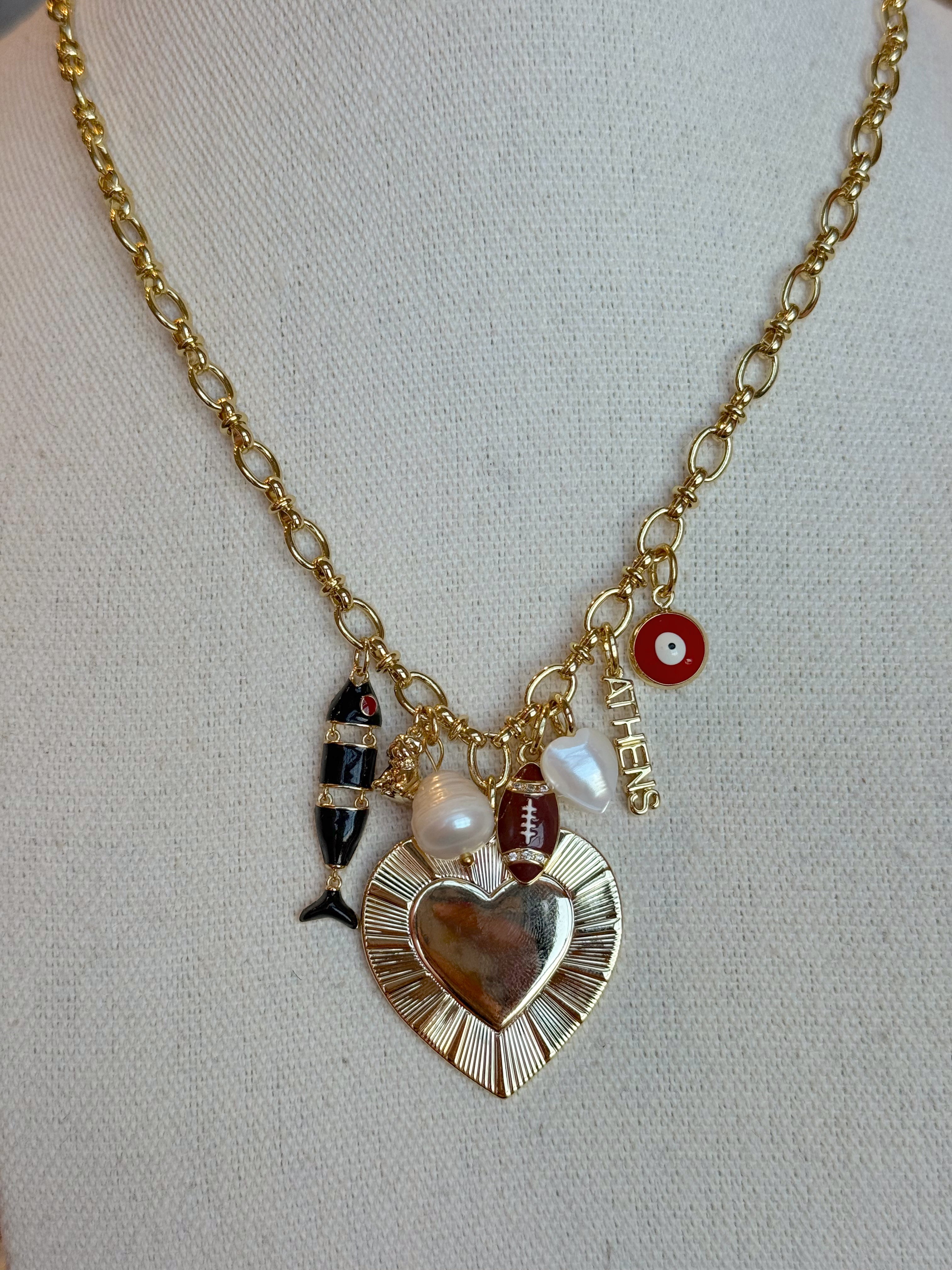 Handmade one of a kind gold filled charm necklace with mix of gold-filled enamel charms.