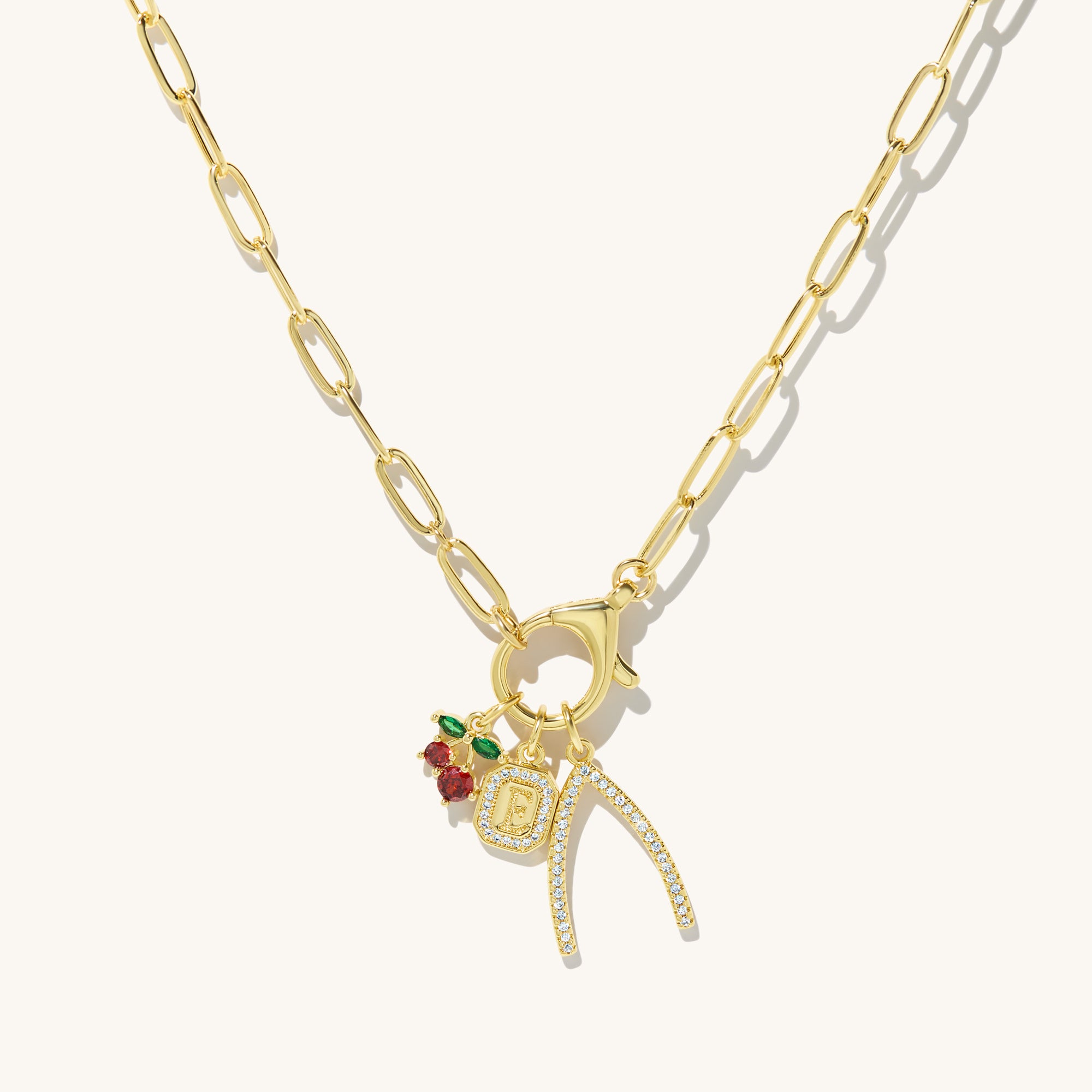 Unlock your creativity with the Shirin Lock Necklace! This quirky charm necklace features a lock, allowing you to easily customize and interchange your favorite charms. Get ready to add a touch of playful personality to any outfit with this DIY necklace.