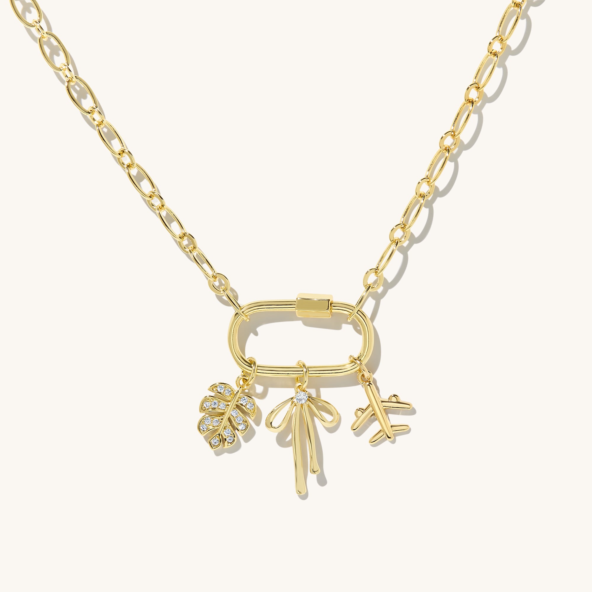 Unlock your creativity with the Tara Lock Necklace! This quirky charm necklace features a carabiner lock, allowing you to easily customize and interchange your favorite charms. Get ready to add a touch of playful personality to any outfit with this DIY necklace.