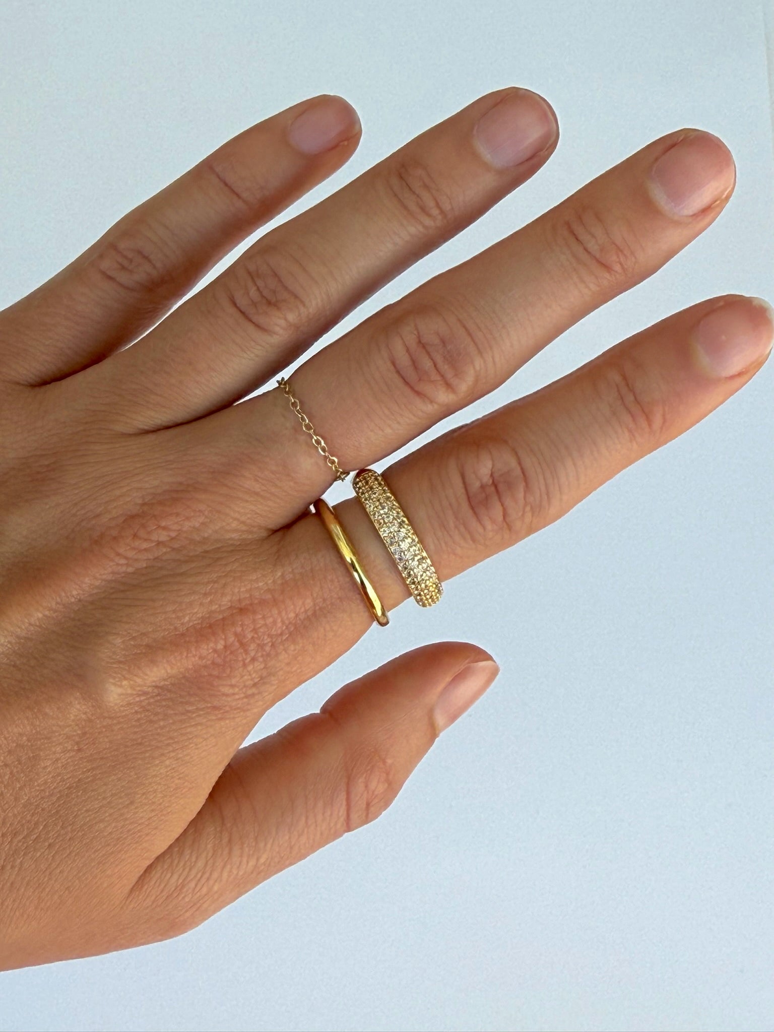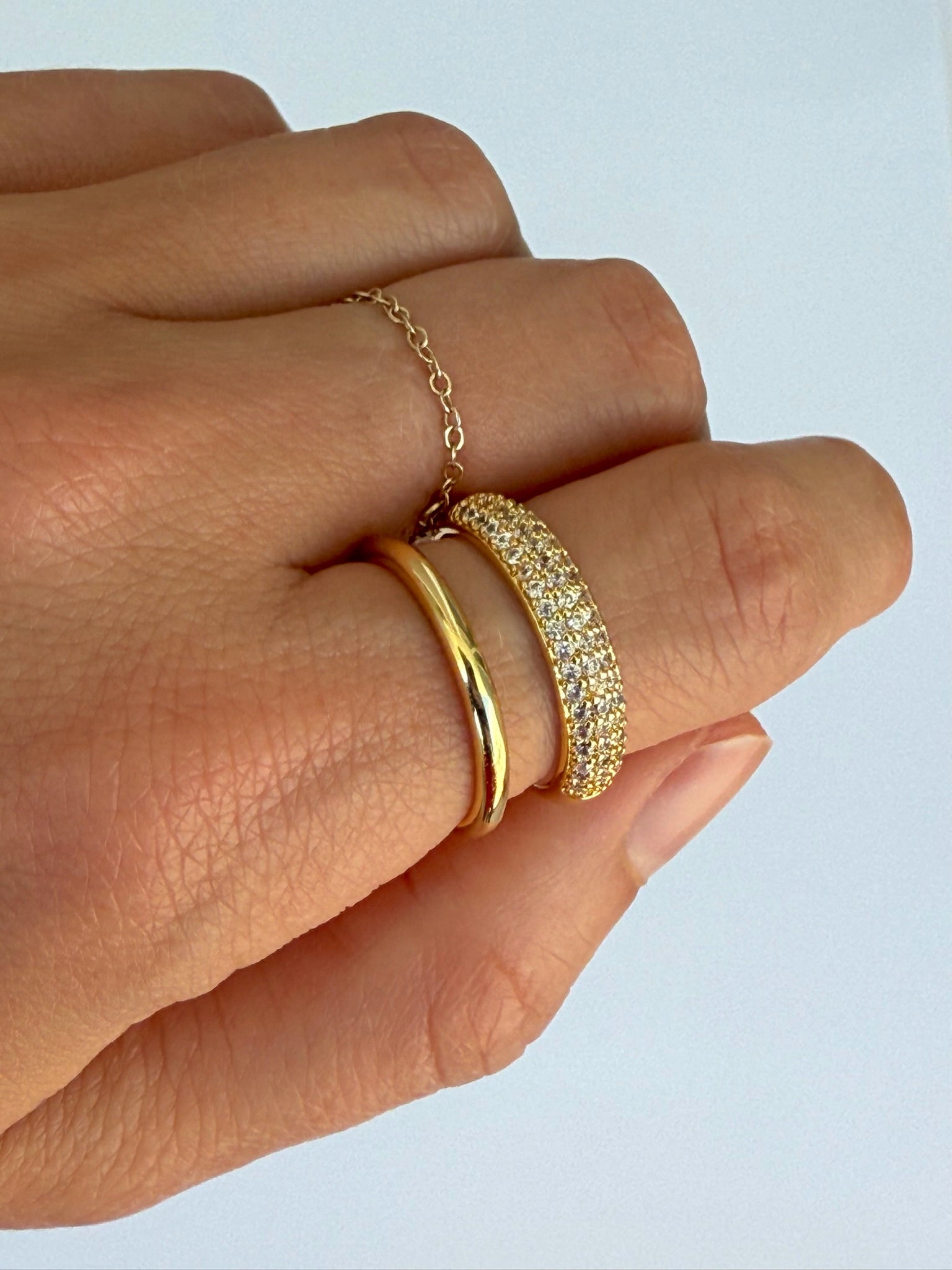 Adjustable double band gold filled ring inlaid with stones- versatile, and durable — the perfect finishing touch to your everyday jewelry collection.